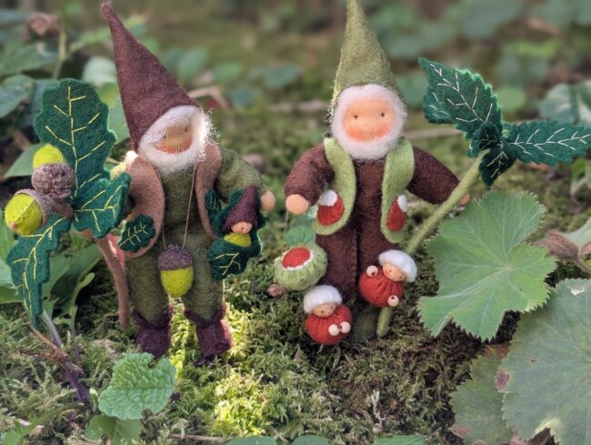 Kabouters blijven leuk en ik ben nog meer aan het ontwerpen. Deze twee nieuwe staan hier gezellig in hun eigen habitat.