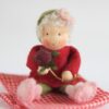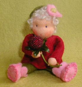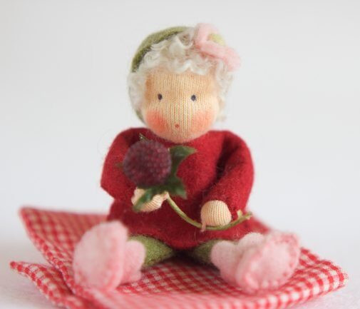 Een lief klein kleutertje van ongeveer 10 cm snoept van een rijpe braam. Niet moeilijk om te maken e leuk om op een pot bramenjam te zetten.