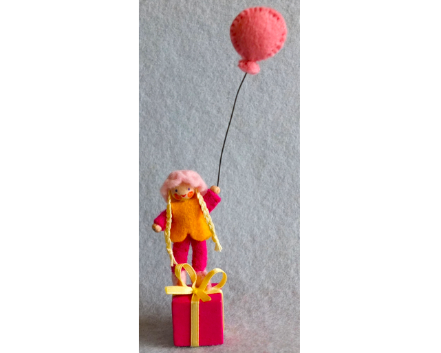 Dit is een lief ontwerp van een kindje op een cadeautje. Het cadeautje is gemaakt van een houten blokje zodat het stevig kan blijven staan. Hij is ook leuk voor in de jaarring en je kunt de kleuren en haren aanpassen aan de jarige. Wie ga jij blij maken met dit popje van ongeveer 5 cm?