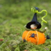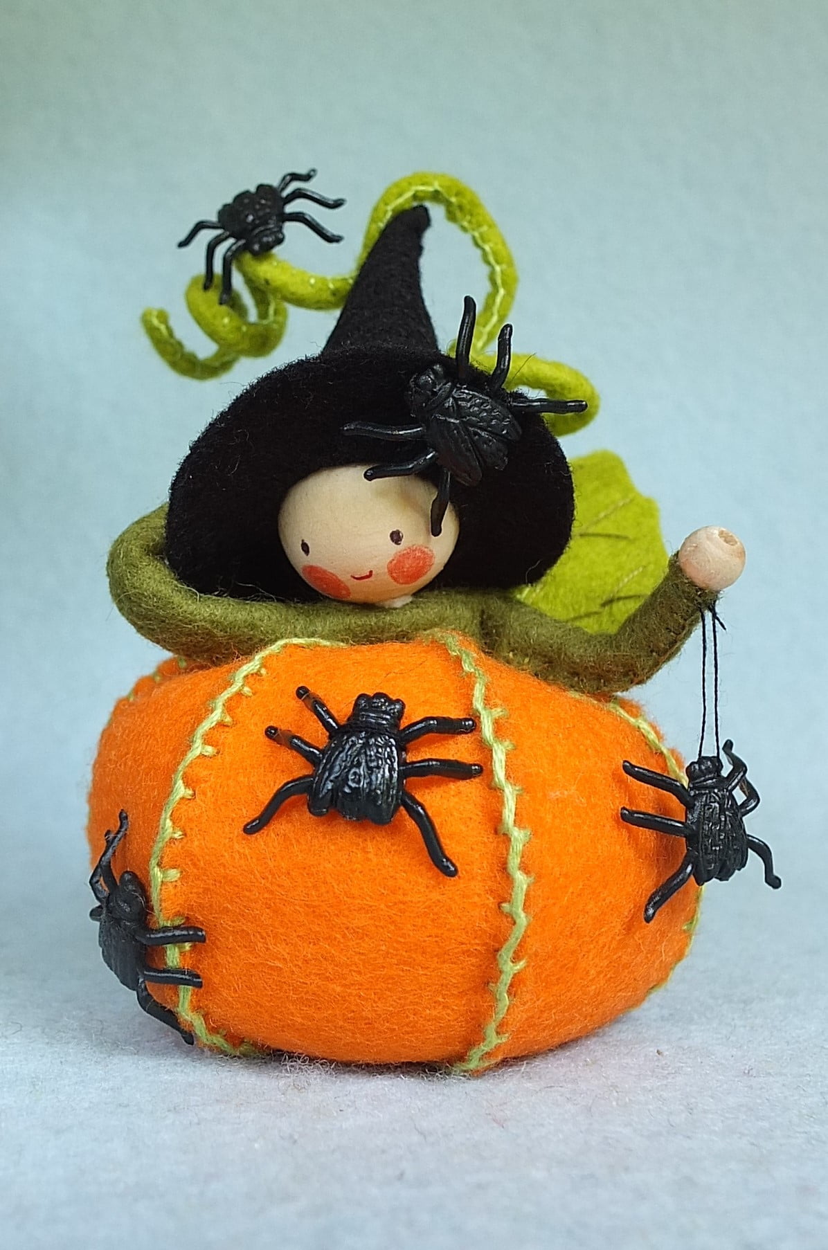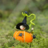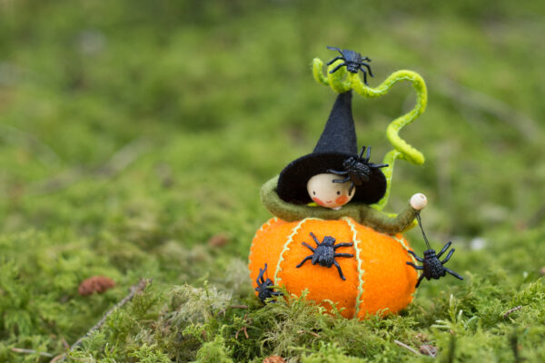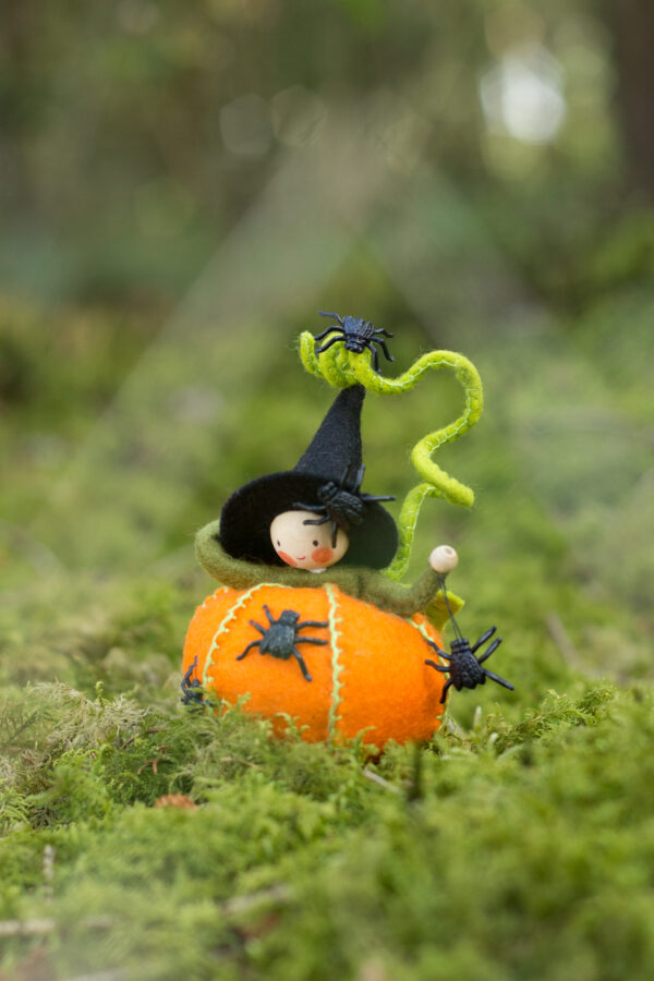 Dit Nederlands patroon maakte ik ooit in opdracht en er was maar een beperkte oplage van. Tijd om dit lieve heksje nieuw leven in te blazen. Ze is ongeveer 10 cm hoog en eenvoudig om te maken. Rond Halloween kun je vast nep spinnen of vliegen vinden.