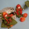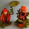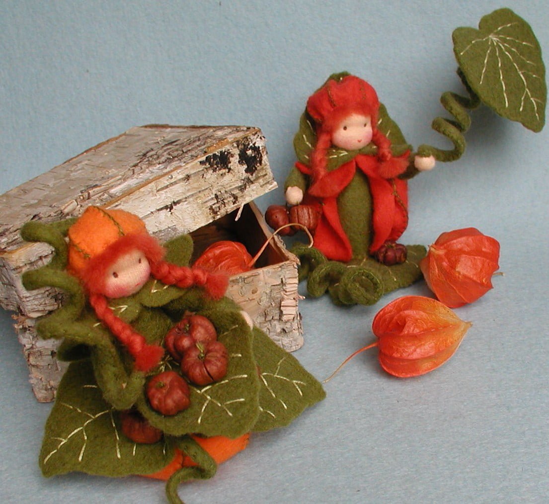 Twee verschillende meisjes van ongeveer 10 cm zitten gezellig te kletsen. Een prachtig ontwerp voor de herfst.