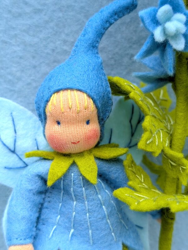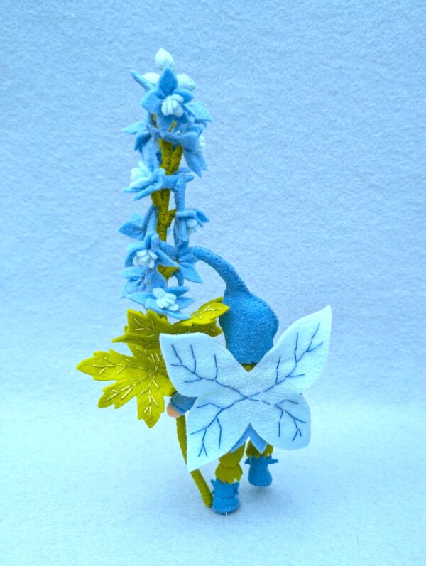 Dit bloemenkind brengt extra kleur en vrolijkheid op de seizoenstafel. Het elfje is 16 cm hoog (inclusief muts) en draagt de indrukwekkende ridderspoor, die maar liefst 24 cm lang is. Uitgevoerd in schitterende blauwtinten, met een duidelijke stap-voor-stap beschrijving, tekeningen en foto’s zodat het maken voor iedereen goed te doen is.