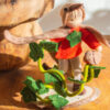 Het popje is 13 cm hoog en heeft een jasje van roodborstvleugels. Hij is versierd met een klimoptak waar een klein roodborstje op zit.
