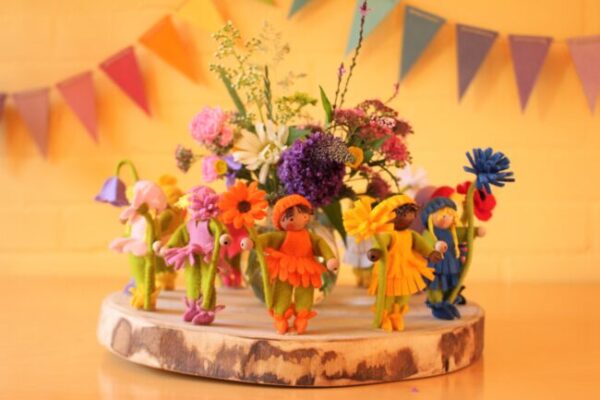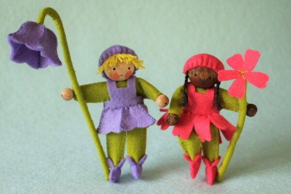 Twee lieve bloemenkinderen van 8 cm die eenvoudig te maken zijn. Ze horen bij een serie van 12 bloemenkinderen voor in de jaarring (van bijvoorbeeld Grimms) Hier kun je niet anders dan heel er blij van worden.