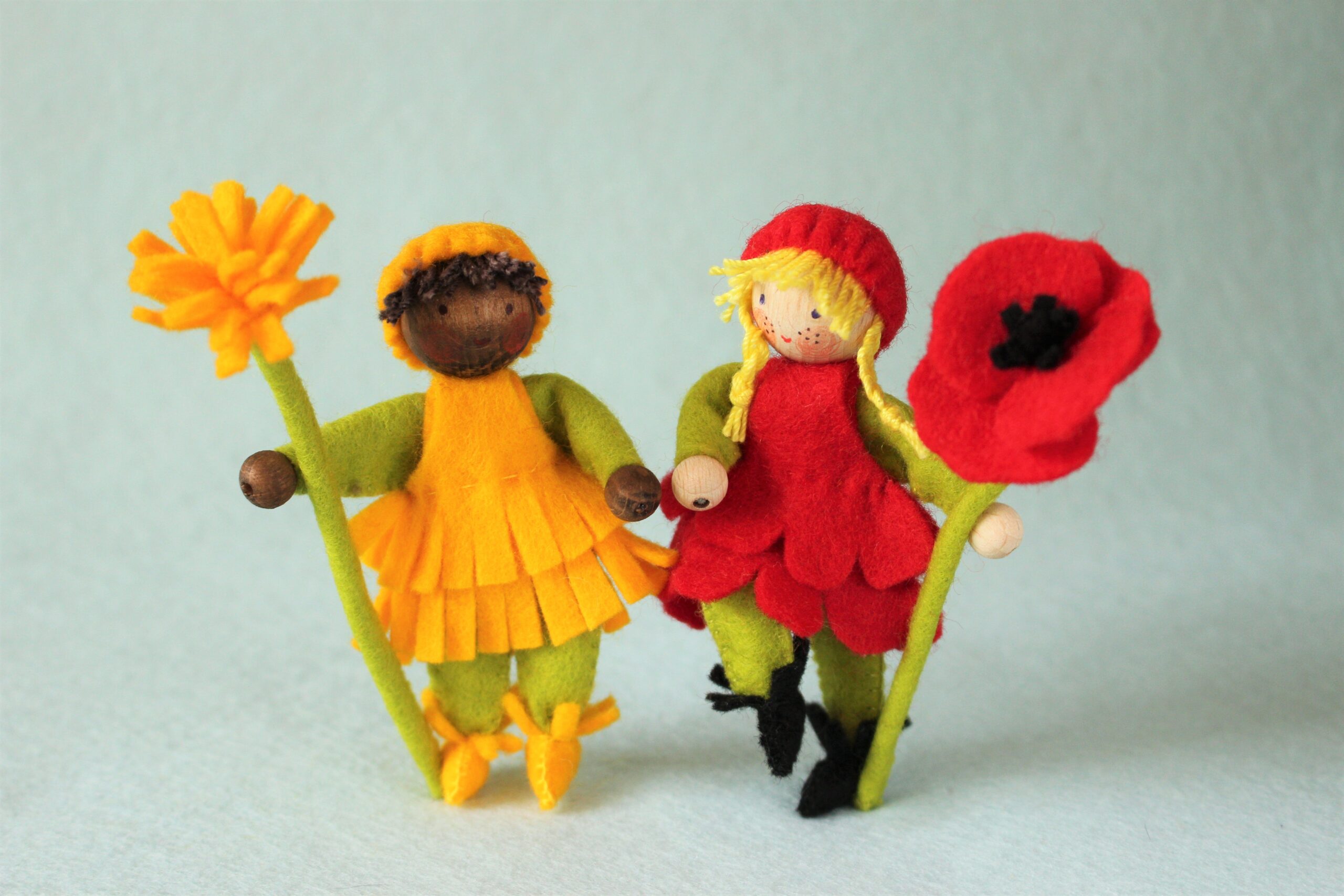 Van bloemenkinderen word je altijd blij. Dit zijn twee eenvoudig te maken bloemenkinderen van 8 cm. Je kunt ze ook als stekers maken en dan passen ze in de jaarring. Ze horen bij een serie van 12 bloemenkinderen.