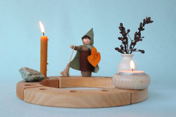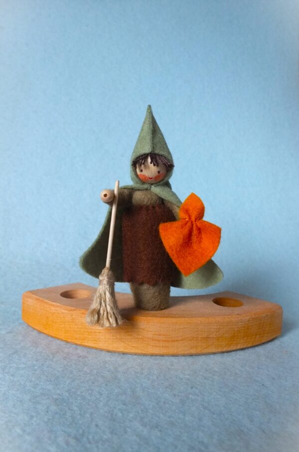 Aan het einde van de wintertijd komt Vrouwtje Dooi de sneeuw weg vegen. Ze houdt niet van de kou en heeft steeds een zakdoekje nodig. Daarom helpt ze een handje om te winter te laten verdwijnen. Ze is 12 cm groot en makkelijk om te maken.