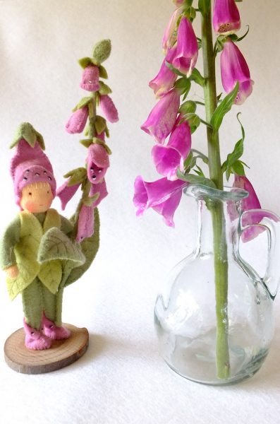 Dit is een patroonblad van een prachtig bloemenkind van 15 cm hoog (de tak is 19 cm). Op onverwachte plaatsen duikt het Vingerhoedskruid op en brengt kleur en vrolijkheid in de zomer. Zelfs de hommels vieren feest en duiken van de ene in de andere kelk.