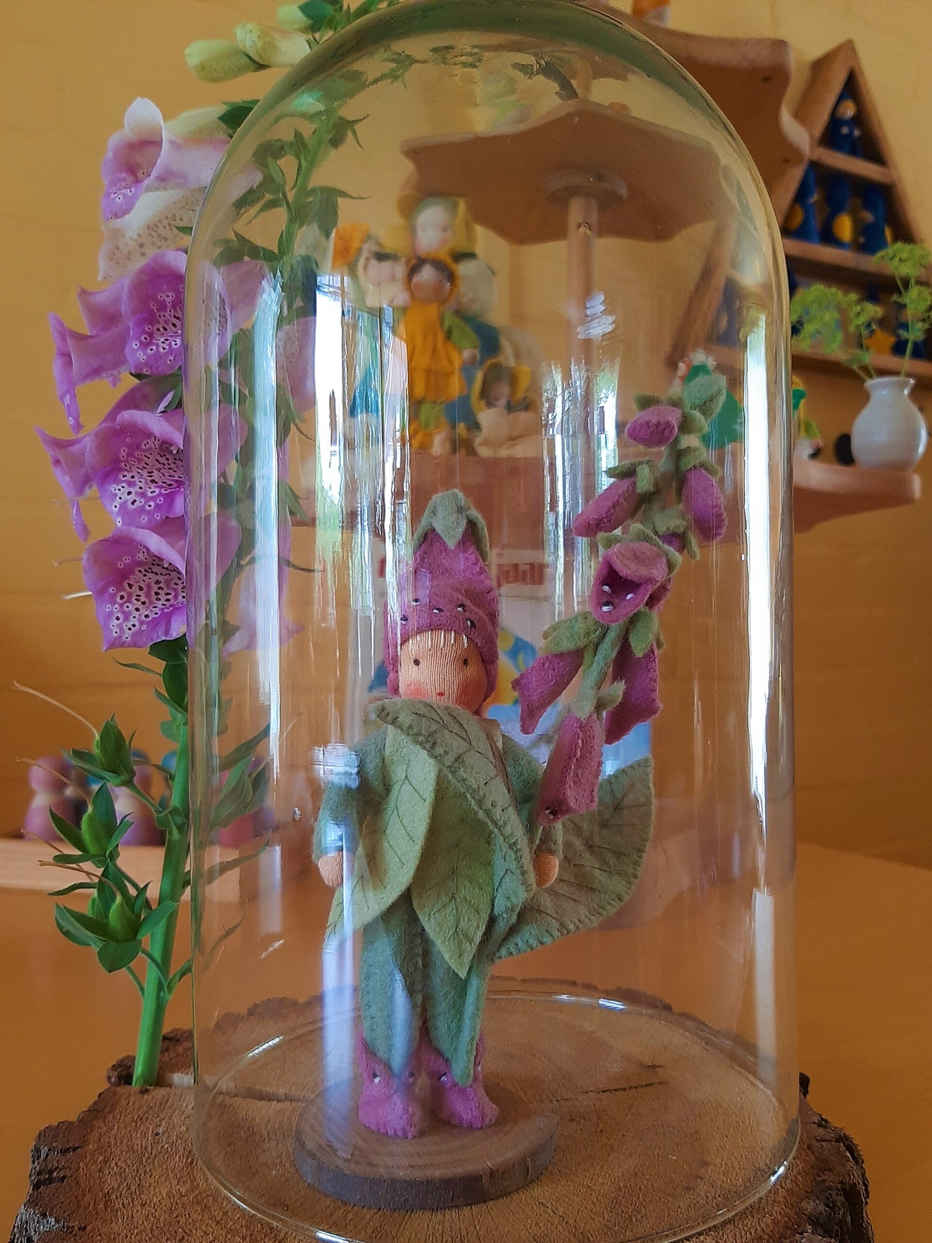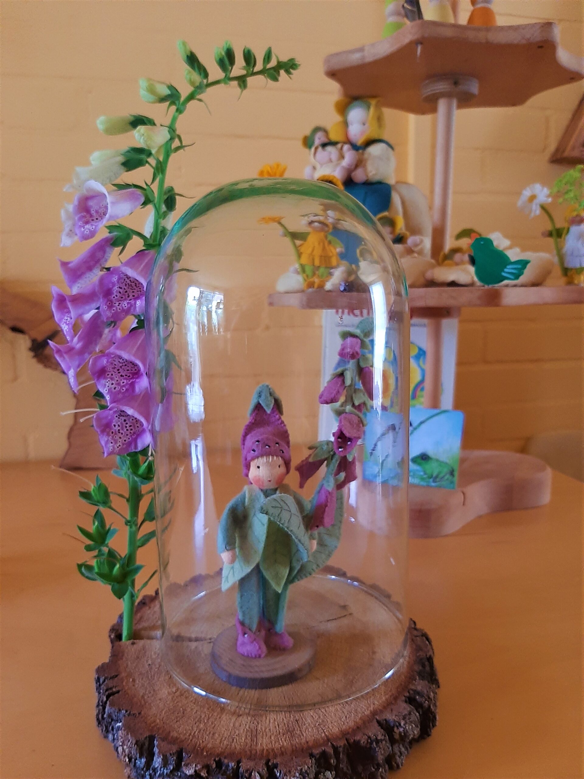 Dit is een patroonblad van een prachtig bloemenkind van 15 cm hoog (de tak is 19 cm). Op onverwachte plaatsen duikt het Vingerhoedskruid op en brengt kleur en vrolijkheid in de zomer. Zelfs de hommels vieren feest en duiken van de ene in de andere kelk.